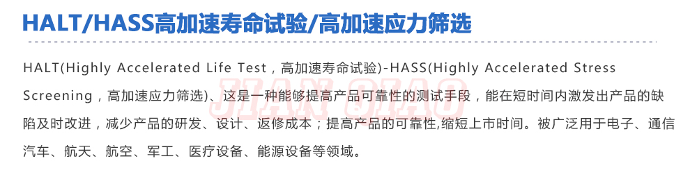 用途:HALT(Highly?Accelerated?Life?Test,高加速壽命試驗)-HASS(Highly?Accelerated?Stress?Screening,高加速應力篩選)、這是一種能夠提高產品可靠性的測試手段,能在短時間內激發出產品的缺陷及時改進