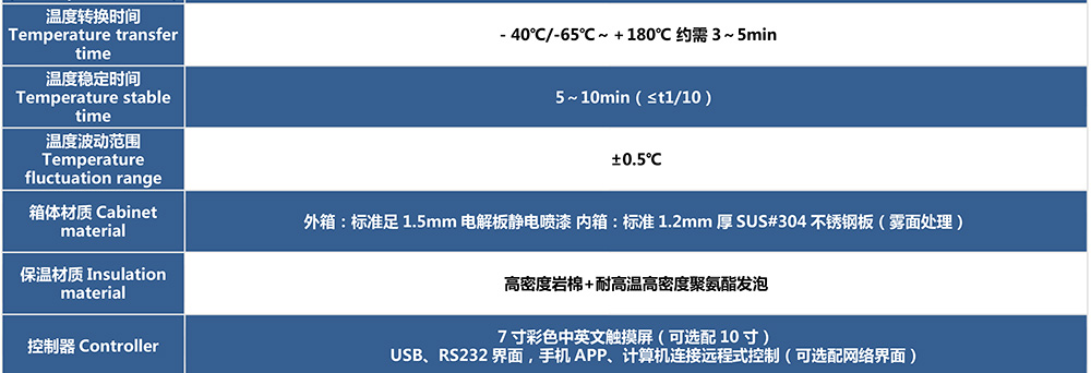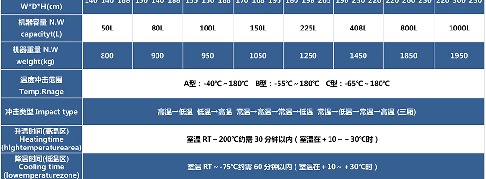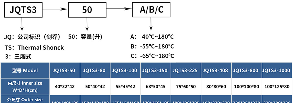 • 三廂式冷熱沖擊試驗箱型號命名及參數表