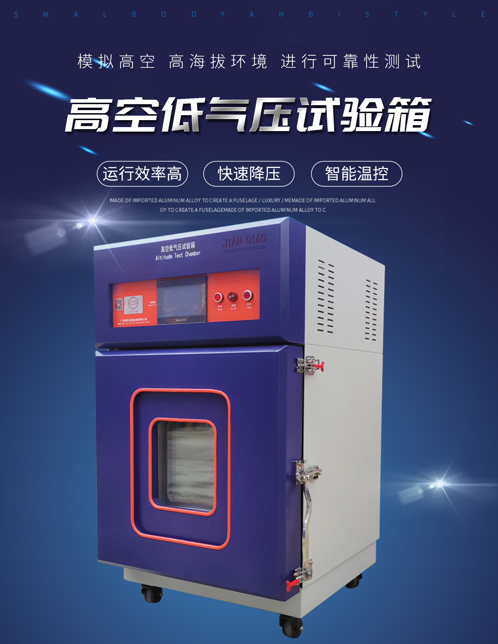 高空低氣壓試驗箱可以模擬高海拔、高空、(高原地區(qū))氣候進行貯存運用、運輸可靠性試驗,并可同時對試件通電進行電氣性能參數(shù)的測試設備。適用于國防工業(yè),航天工業(yè)自動化零組件,汽車部件,電池,平面顯示屏模組工業(yè)及相關(guān)產(chǎn)品料進行環(huán)境試驗 - 高溫試驗、低溫試驗、溫度變化試驗、低氣壓試驗、溫度高度試驗、低溫/低氣壓綜合試驗、高溫/低氣壓綜合試驗。
