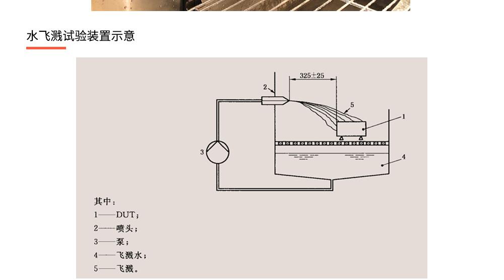 用途:冰水沖擊試驗(浪涌水的溫度沖擊試驗)是模擬部件在駛過積水時而產生的浪涌水的負荷情況,保證部件由于水而急劇冷卻情況下的功能穩定性。如車輛在冬季有水路面駕駛時冰水濺落到熱的系統/組件上,失效模式為不同的溫度膨脹系數導致的材料機械破裂或密封失效