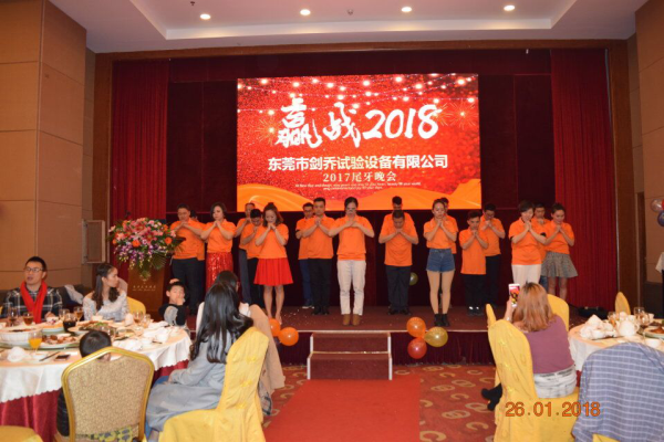 2018年元月26日,劍喬試驗設備于塘廈匯華酒店成功舉辦了2017年尾牙晚會,會上高朋滿座,劍喬總經理在會上發表致辭,表達了對各位合作伙伴一年以來大力支持的感謝,更是總結了2017年劍喬公司一年里的收獲及成長,并給優秀員工及突出貢獻的人員給予表彰。再對劍喬2018年定下了發展目標及期許,晚會在一片歡樂祥和中進行。